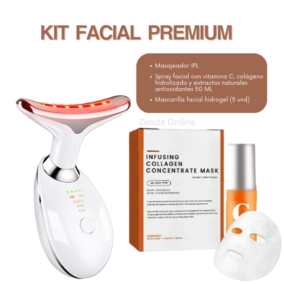 ✅Kit premium = masajeador facial + Spray de 50 ml de colágeno y vitamina C + 5 mascarillas de hidrogel.