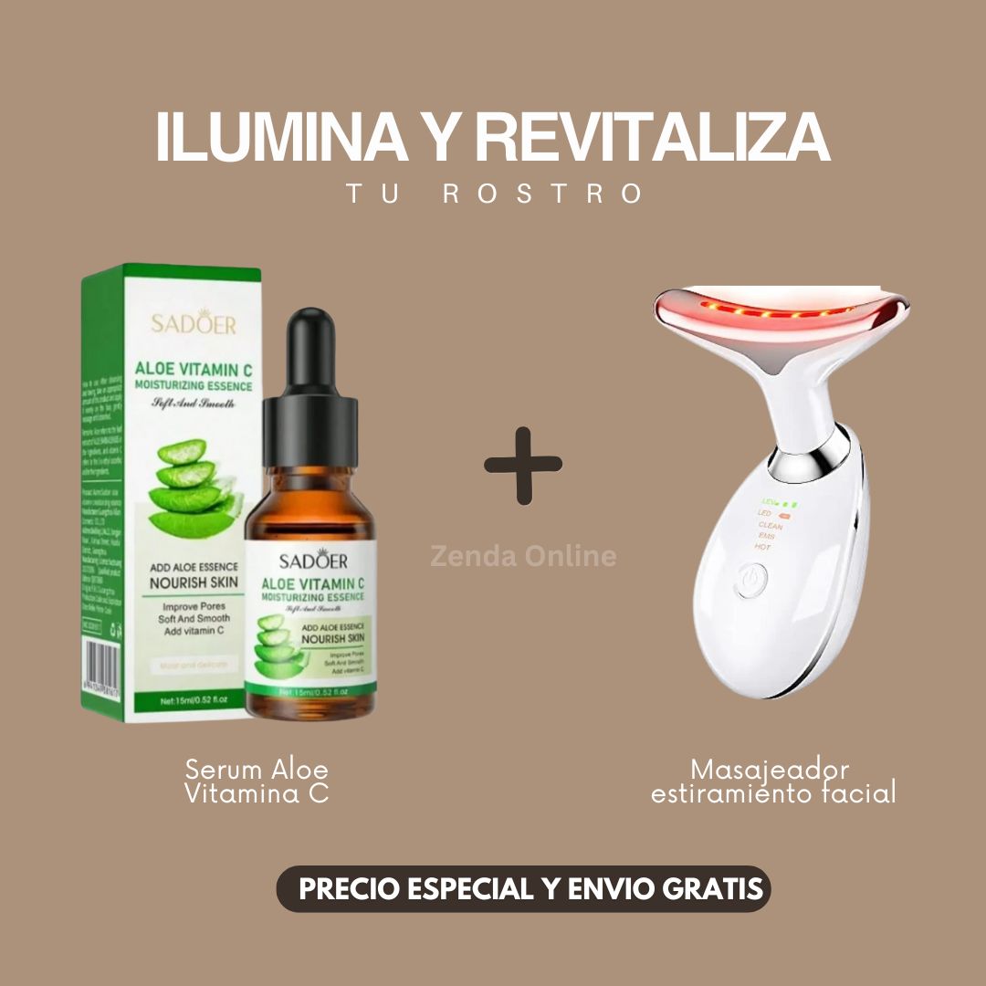 Masajeador facial con luz IPL y Un Frasco de Serúm Aloe Vitamina C de 15 ml.